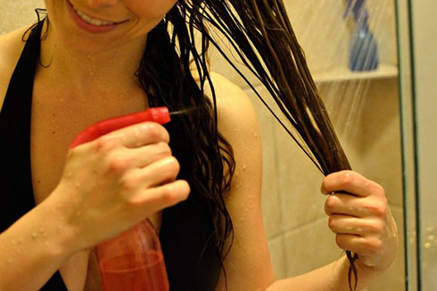 Enxaguar os cabelos com vinagre de álcool é uma receita que deixa os cabelos super macios e brilhantes. Após o xampu, troque o condicionador por uma mistura de duas partes de água para uma de vinagre e passe nos fios. O cheiro vai embora assim que você enxaguar.